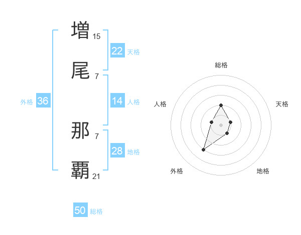 増尾 那覇さんを姓名の画数から五運を鑑定