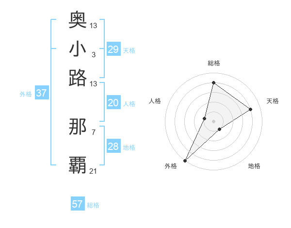 奥小路 那覇さんを姓名の画数から五運を鑑定