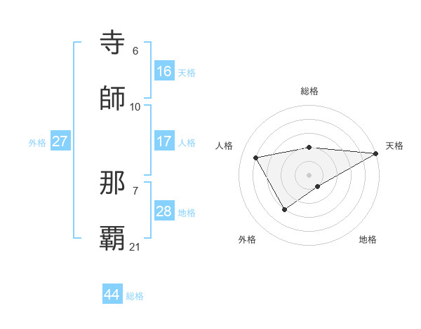 寺師 那覇さんの天格は16画の5点!
