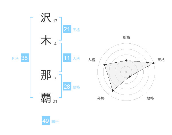 沢木 那覇さんを姓名の画数から五運を鑑定