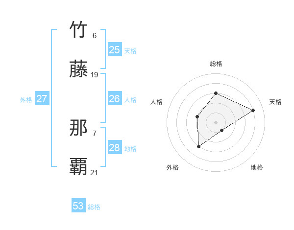 竹藤 那覇さんの天格は25画の4点!
