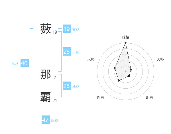 藪 那覇さんの天格は19画の1点!