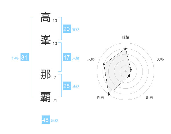 高峯 那覇さんの外格は31画の5点!