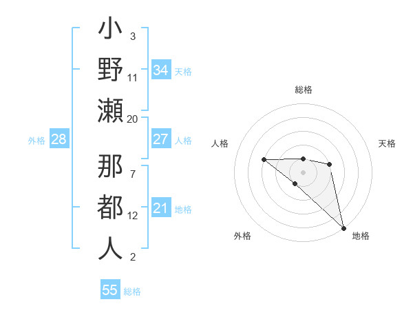小野瀬 那都人さんの総格は55画の1点!