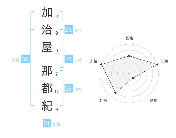 加治屋 那都紀さんを姓名の画数から五運を鑑定