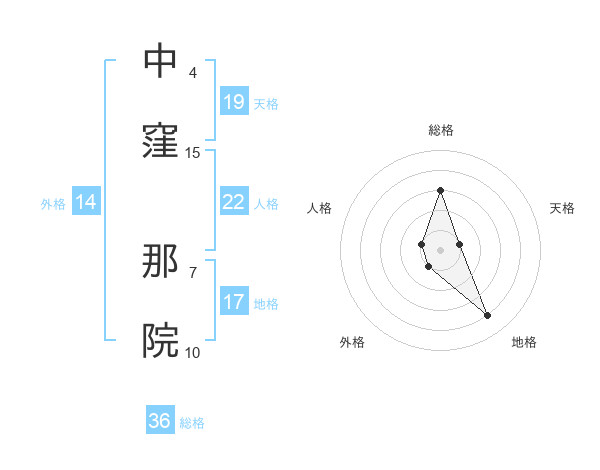 中窪 那院さんの天格は19画の1点!