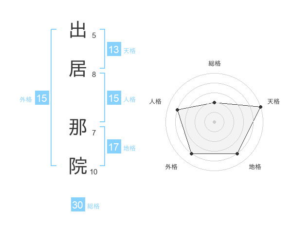 出居 那院さんの天格は13画の5点!
