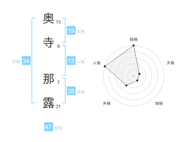 奥寺 那露さんの総格は47画の5点!