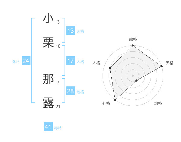 小栗 那露さんの天格は13画の5点!