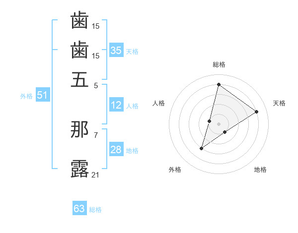 歯歯五 那露さんを姓名の画数から五運を鑑定