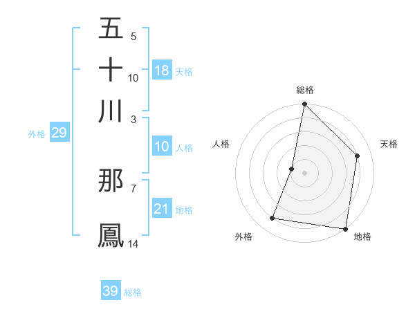 五十川 那鳳さんを姓名の画数から五運を鑑定
