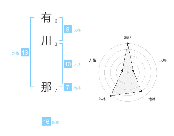 有川 那さんの外格は13画の5点!