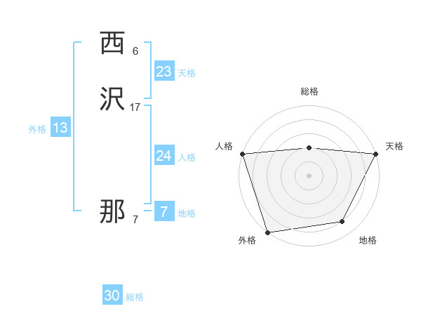 西沢 那さんの外格は13画の5点!