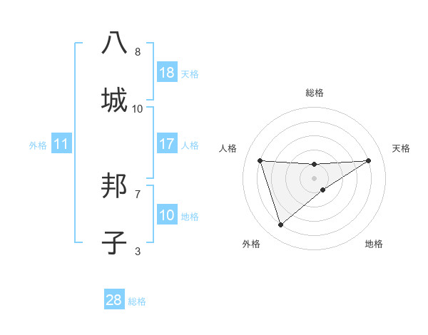 八城 邦子さんの天格は18画の4点!
