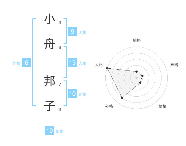小舟 邦子さんの総格は19画の1点!