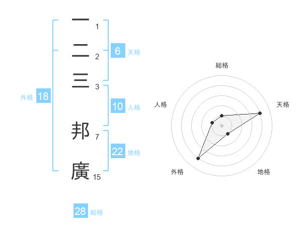 一二三 邦廣さんの外格は18画の4点!
