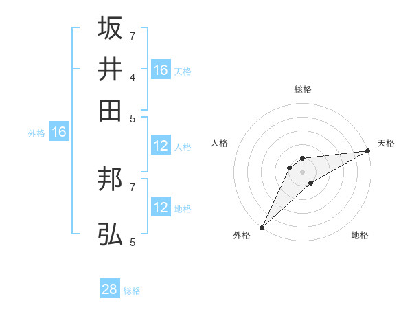 坂井田 邦弘さんを姓名の画数から五運を鑑定