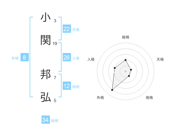 小関 邦弘さんを姓名の画数から五運を鑑定