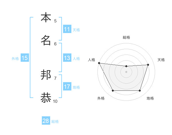 本名 邦恭さんの地格は17画の4点!