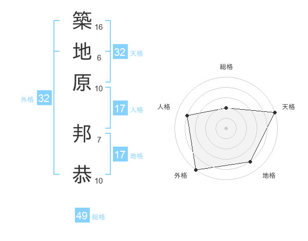 築地原 邦恭さんの天格は32画の5点!