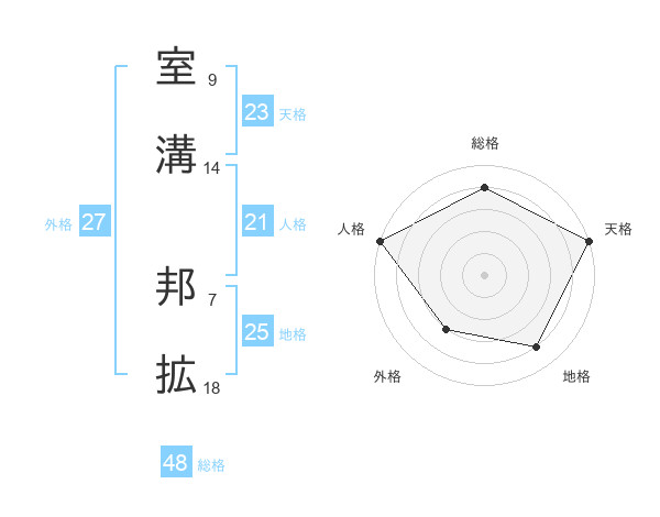 室溝 邦拡さんの天格は23画の5点!