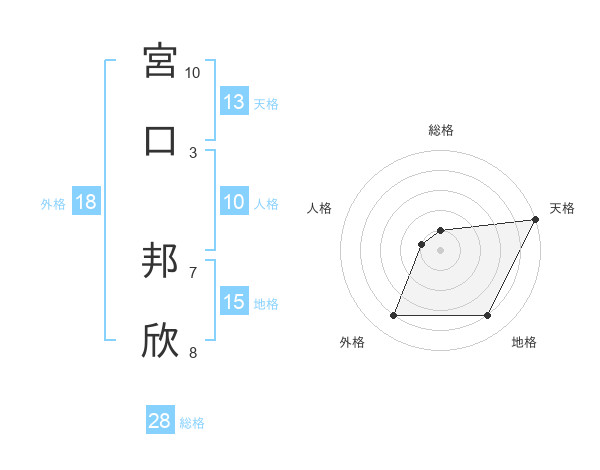 宮口 邦欣さんの天格は13画の5点!