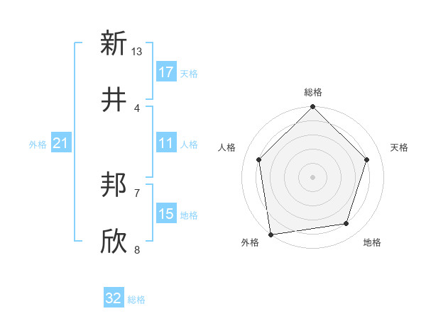 新井 邦欣さんの総格は32画の5点!