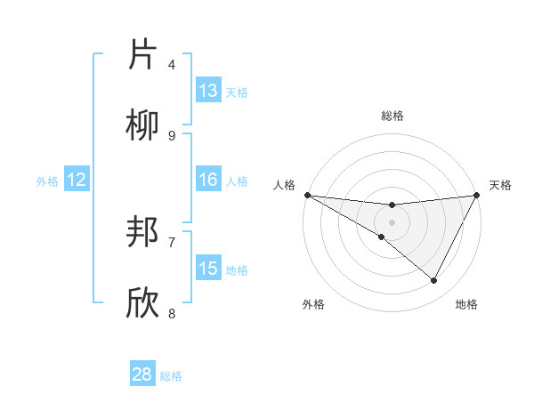 片柳 邦欣さんを姓名の画数から五運を鑑定