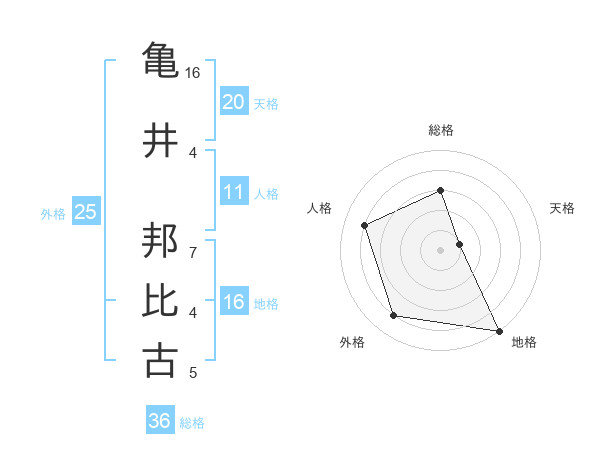 亀井 邦比古さんを姓名の画数から五運を鑑定