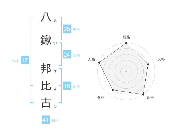 八鍬 邦比古さんの外格は17画の4点!