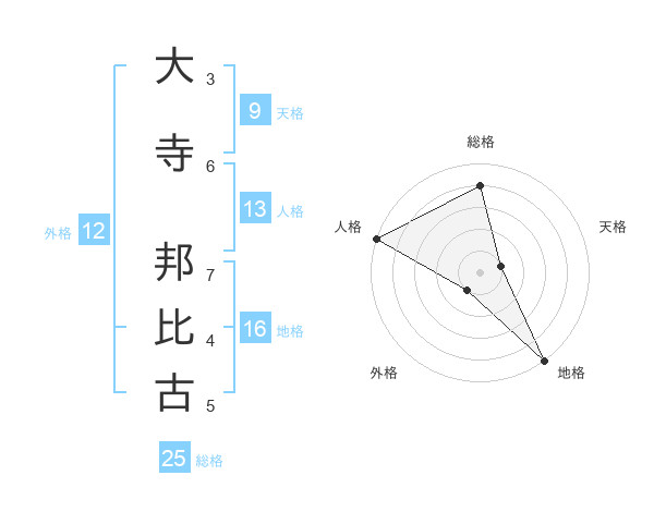 大寺 邦比古さんの総格は25画の4点!