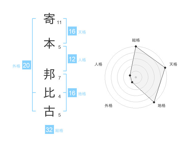 寄本 邦比古さんの地格は16画の5点!