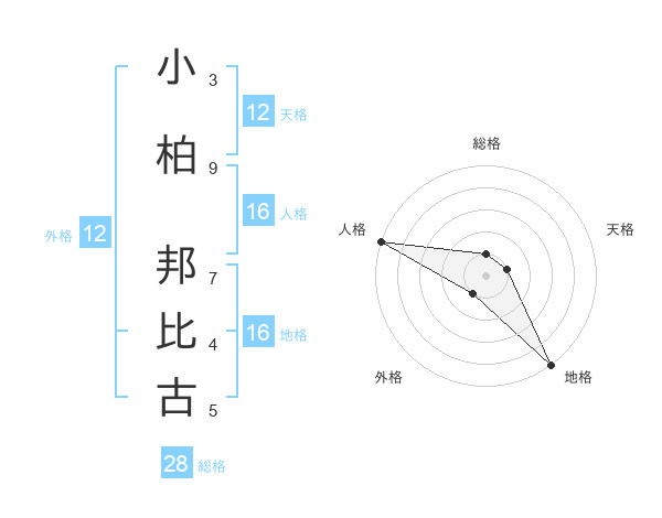 小柏 邦比古さんの天格は12画の1点!