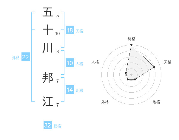 五十川 邦江さんを姓名の画数から五運を鑑定