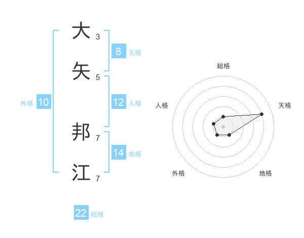 大矢 邦江さんを姓名の画数から五運を鑑定