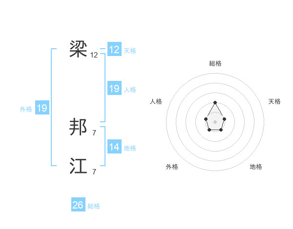 梁 邦江さんの総格は26画の2点!