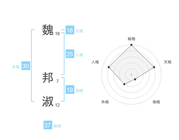 魏 邦淑さんの総格は37画の5点!