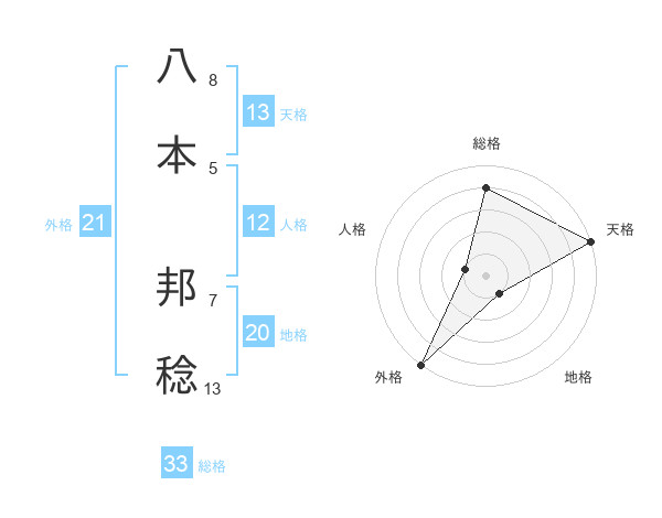 八本 邦稔さんを姓名の画数から五運を鑑定