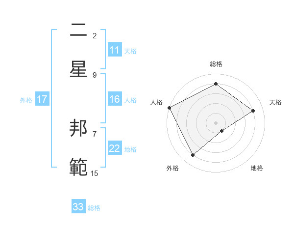二星 邦範さんの外格は17画の4点!