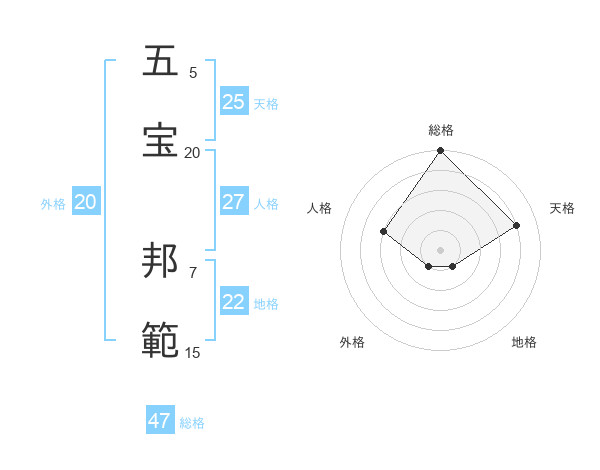 五宝 邦範さんの総格は47画の5点!
