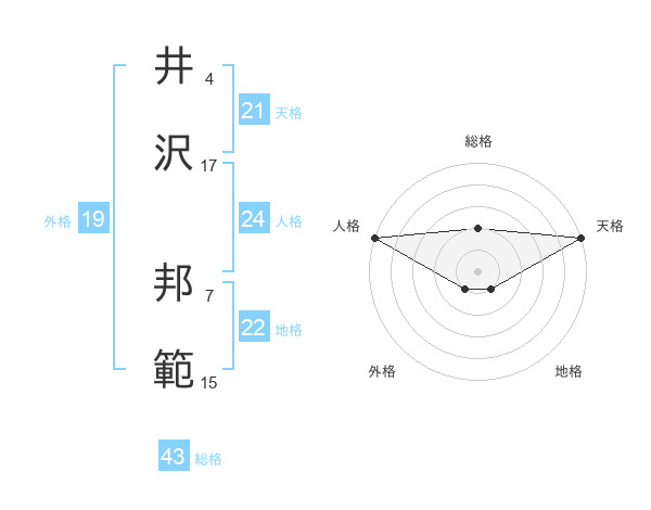 井沢 邦範さんの天格は21画の5点!
