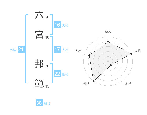 六宮 邦範さんを姓名の画数から五運を鑑定