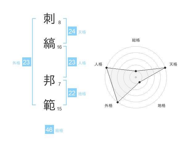 刺縞 邦範さんの総格は46画の1点!