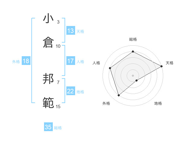 小倉 邦範さんを姓名の画数から五運を鑑定