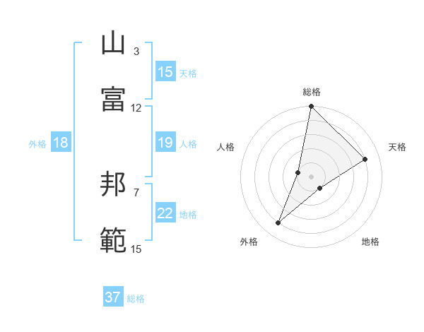 山富 邦範さんの天格は15画の4点!