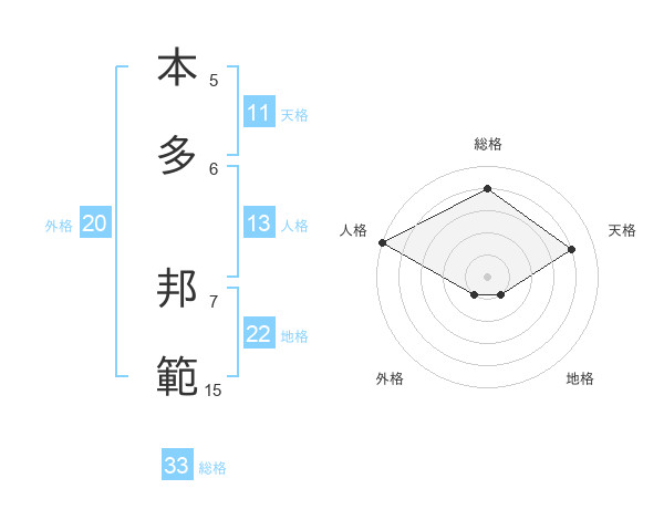 本多 邦範さんの地格は22画の1点!