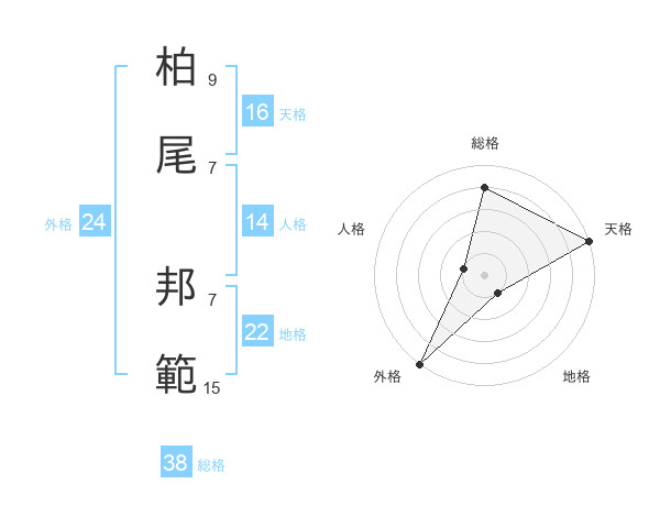 柏尾 邦範さんの総格は38画の4点!