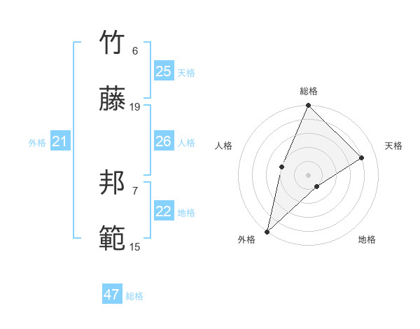 竹藤 邦範さんの総格は47画の5点!