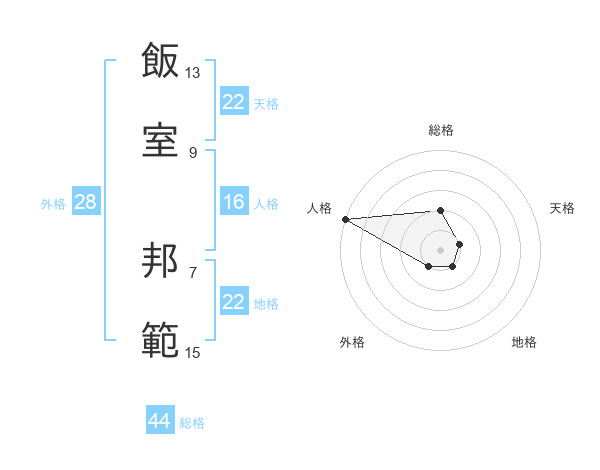 飯室 邦範さんの地格は22画の1点!
