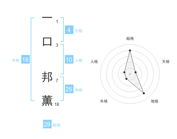 一口 邦薫さんの総格は29画の4点!